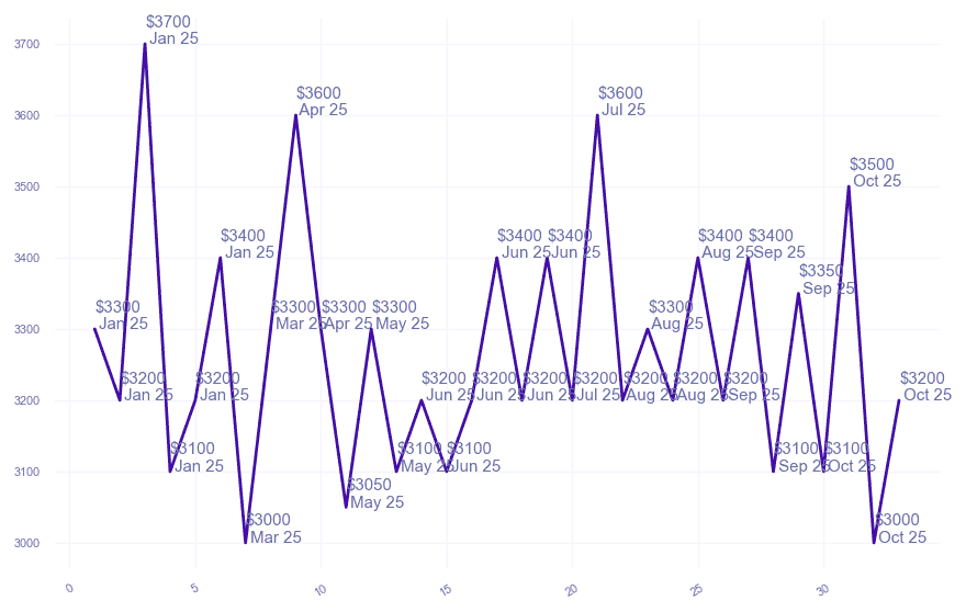 | $5,000 $4.76 psf | 3 | 1000-1100 sqft | Feb 2025 |