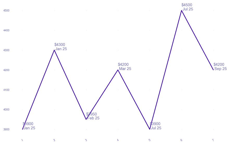 | $4,500 $4.29 psf | 2 | 1000-1100 sqft | Jul 2025 |