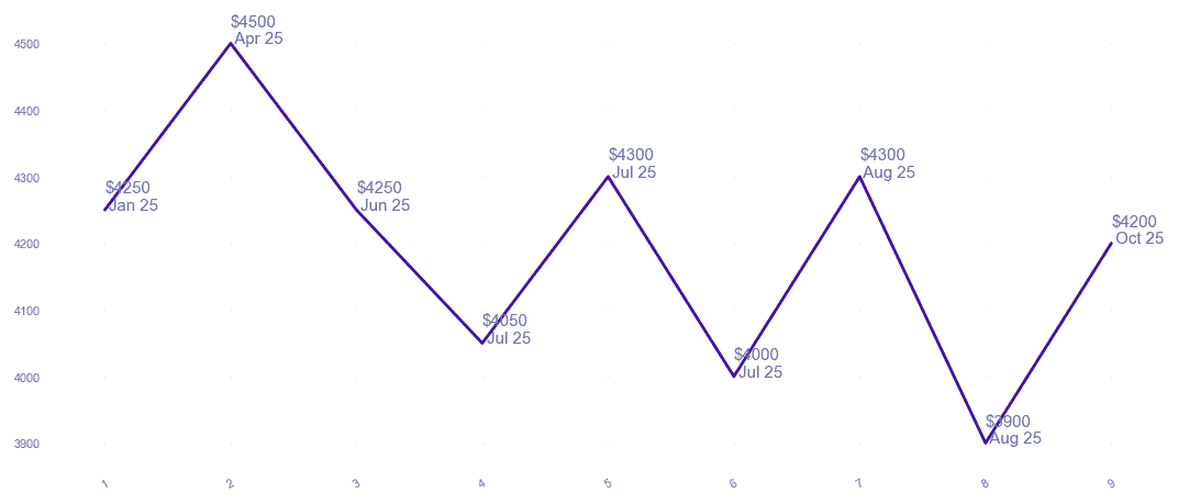 | $4,500 $4.29 psf | 3 | 1000-1100 sqft | Sep 2025 |