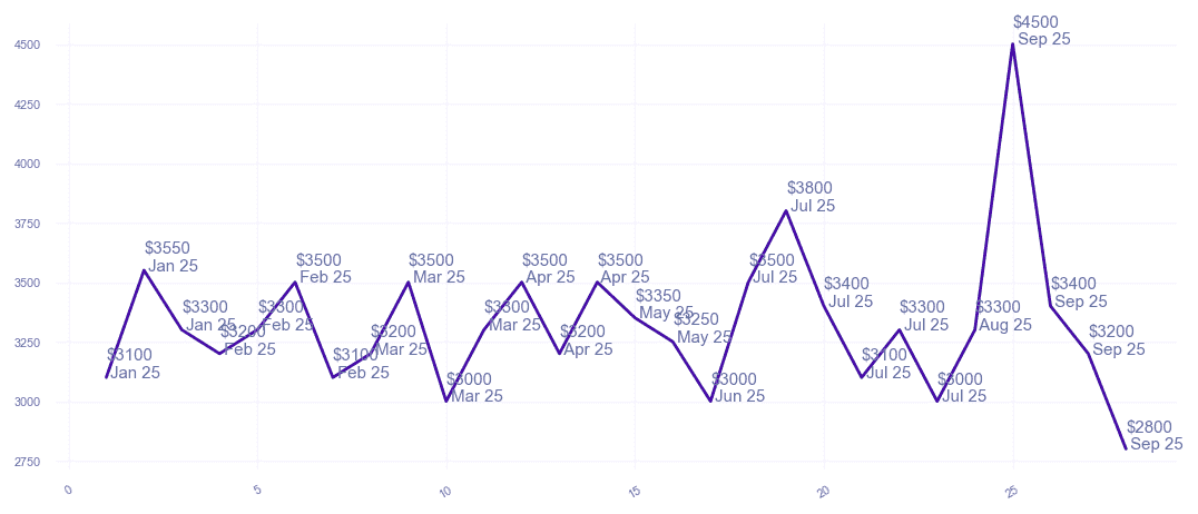 | $4,000 $3.2 psf | 3 | 1200-1300 sqft | Aug 2025 |