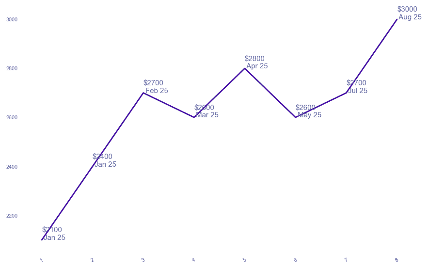 | $3,800 $3.3 psf | 3 | 1100-1200 sqft | Feb 2025 |