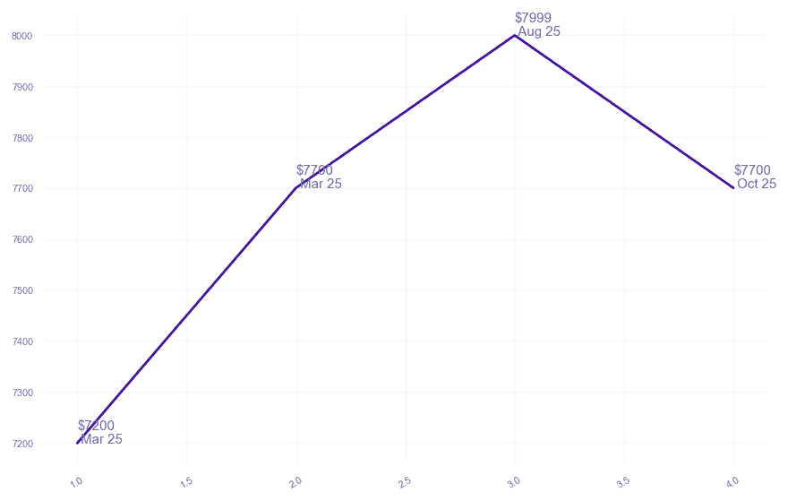 | $7,999 $8.42 psf | 3 | 900-1000 sqft | Aug 2025 |