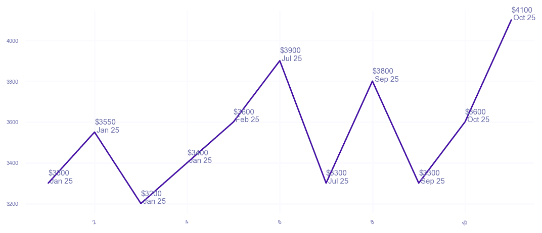 | $4,000 $3.2 psf | 3 | 1200-1300 sqft | Feb 2025 |