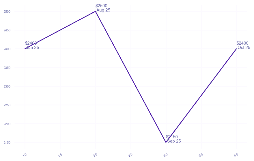 | $2,400 $6.86 psf | 1 | 300-400 sqft | Oct 2025 |