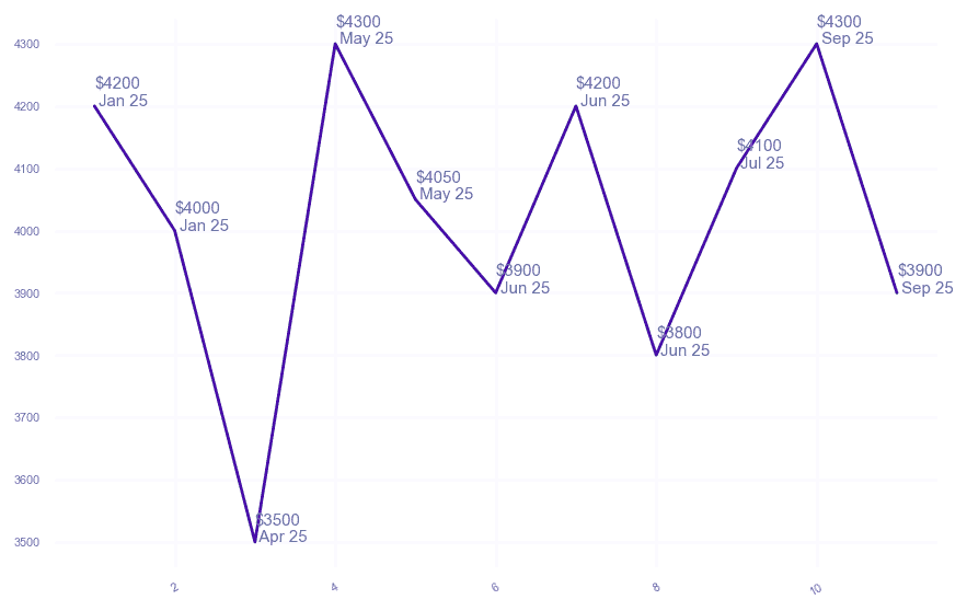 | $5,100 $4.08 psf | 3 | 1200-1300 sqft | Sep 2025 |