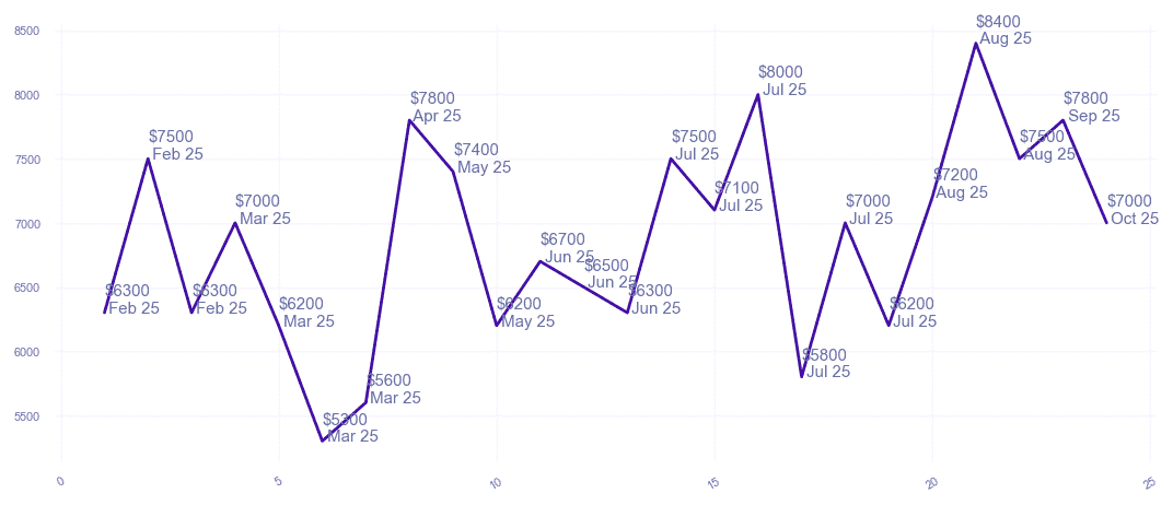 | $7,800 $3.63 psf | 3 | 2100-2200 sqft | Sep 2025 |