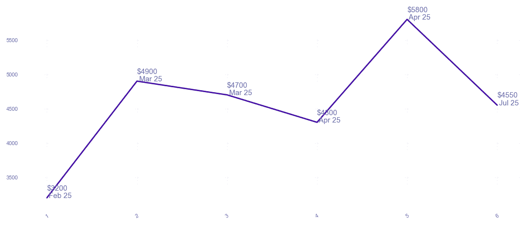 | $6,300 $5.04 psf | 4 | 1200-1300 sqft | Jun 2025 |