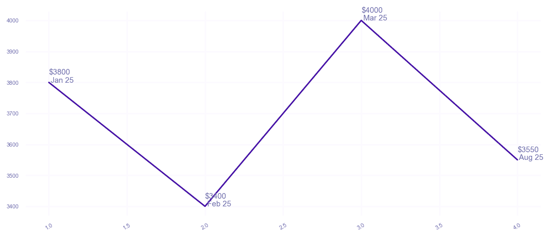 | $4,000 $3.2 psf | 3 | 1200-1300 sqft | Mar 2025 |