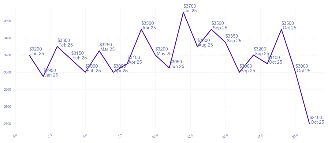 | $3,900 $3.71 psf | 2 | 1000-1100 sqft | Mar 2025 |