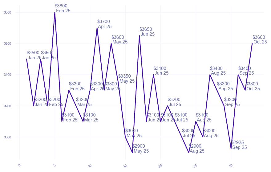 | $3,600 $4.8 psf | 2 | 700-800 sqft | Oct 2025 |