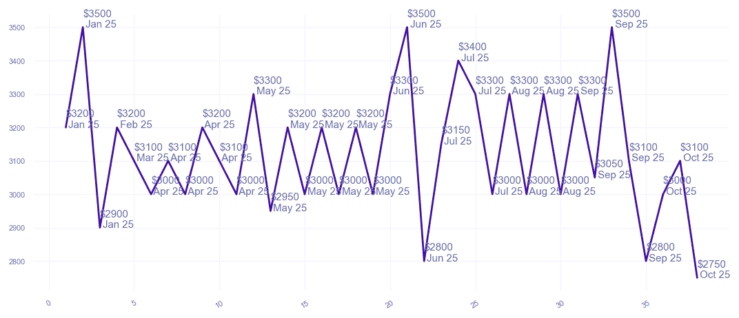 | $3,800 $3.3 psf | 3 | 1100-1200 sqft | Feb 2025 |