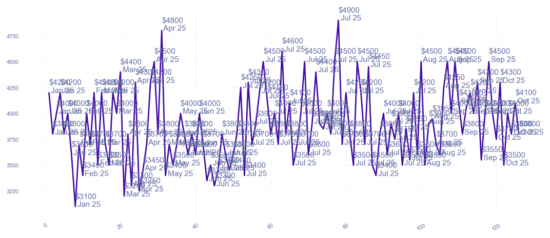 | $5,600 $4.87 psf | 4 | 1100-1200 sqft | Apr 2025 |