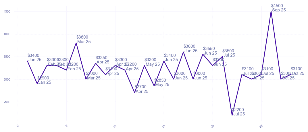 | $4,500 $3.91 psf | 3 | 1100-1200 sqft | Sep 2025 |