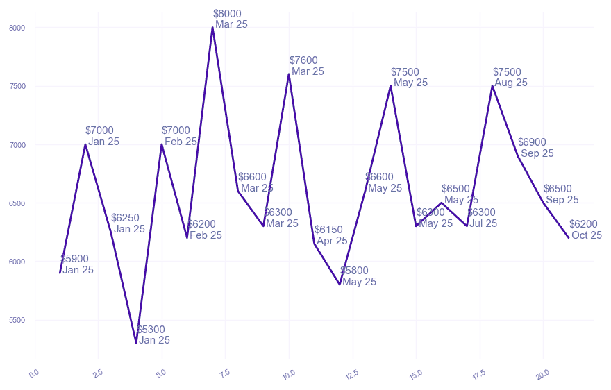 | $8,000 $6.4 psf | 2 | 1200-1300 sqft | Mar 2025 |