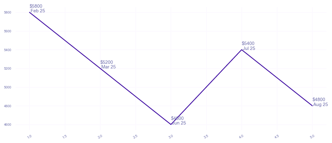 | $5,800 $4.64 psf | 4 | 1200-1300 sqft | Feb 2025 |