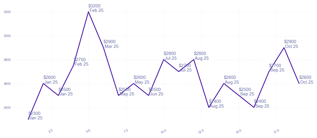 | $2,700 $3.6 psf | 2 | 700-800 sqft | Oct 2025 |