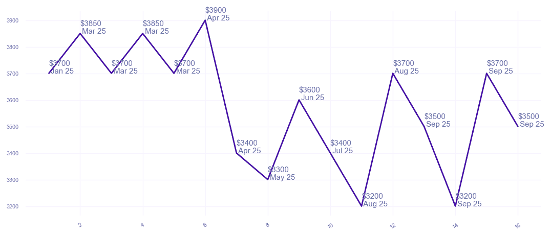 | $3,800 $5.07 psf | 3 | 700-800 sqft | May 2025 |