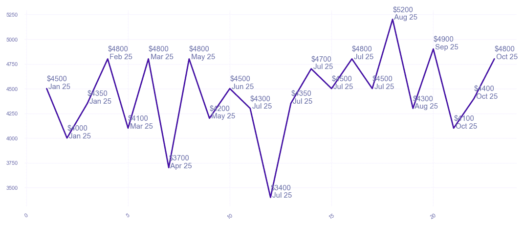| $4,800 $3.84 psf | 3 | 1200-1300 sqft | Oct 2025 |