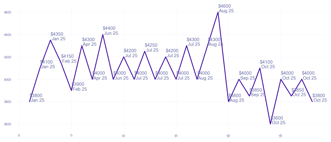| $3,800 $4.0 psf | 2 | 900-1000 sqft | Oct 2025 |