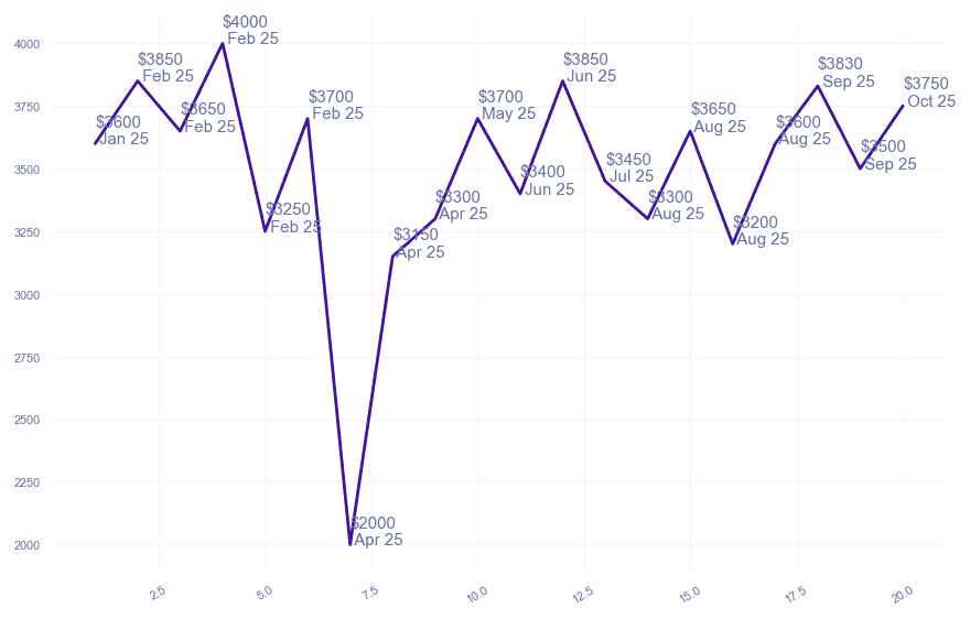 | $4,500 $6.0 psf | 2 | 700-800 sqft | Oct 2025 |