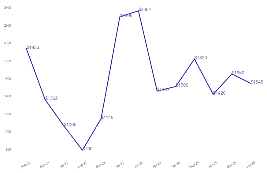 | $5,438,000 $1,545 psf | 3520 sqft | Sep 25 | |