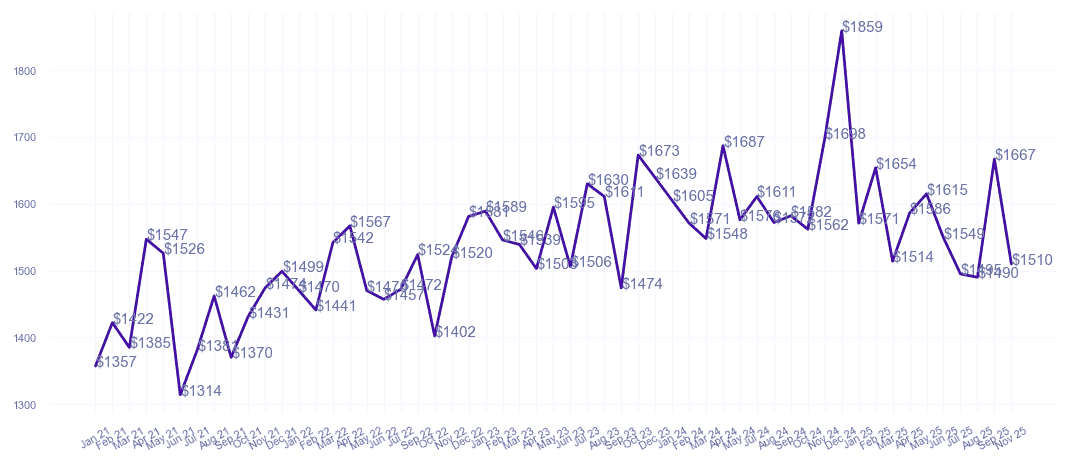 | $905,000 $1,450 psf | 624 sqft | Nov 25 | |