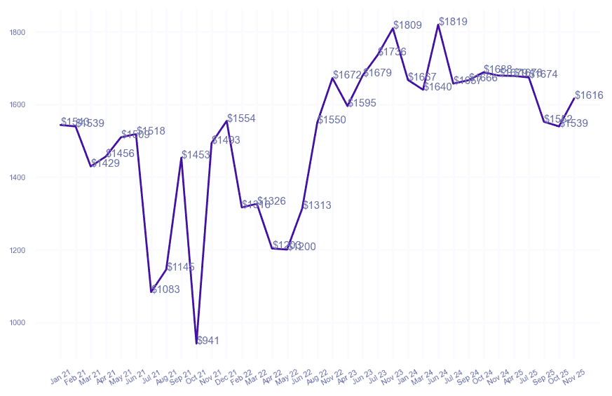 | $905,000 $1,616 psf | 560 sqft | Nov 25 | |
